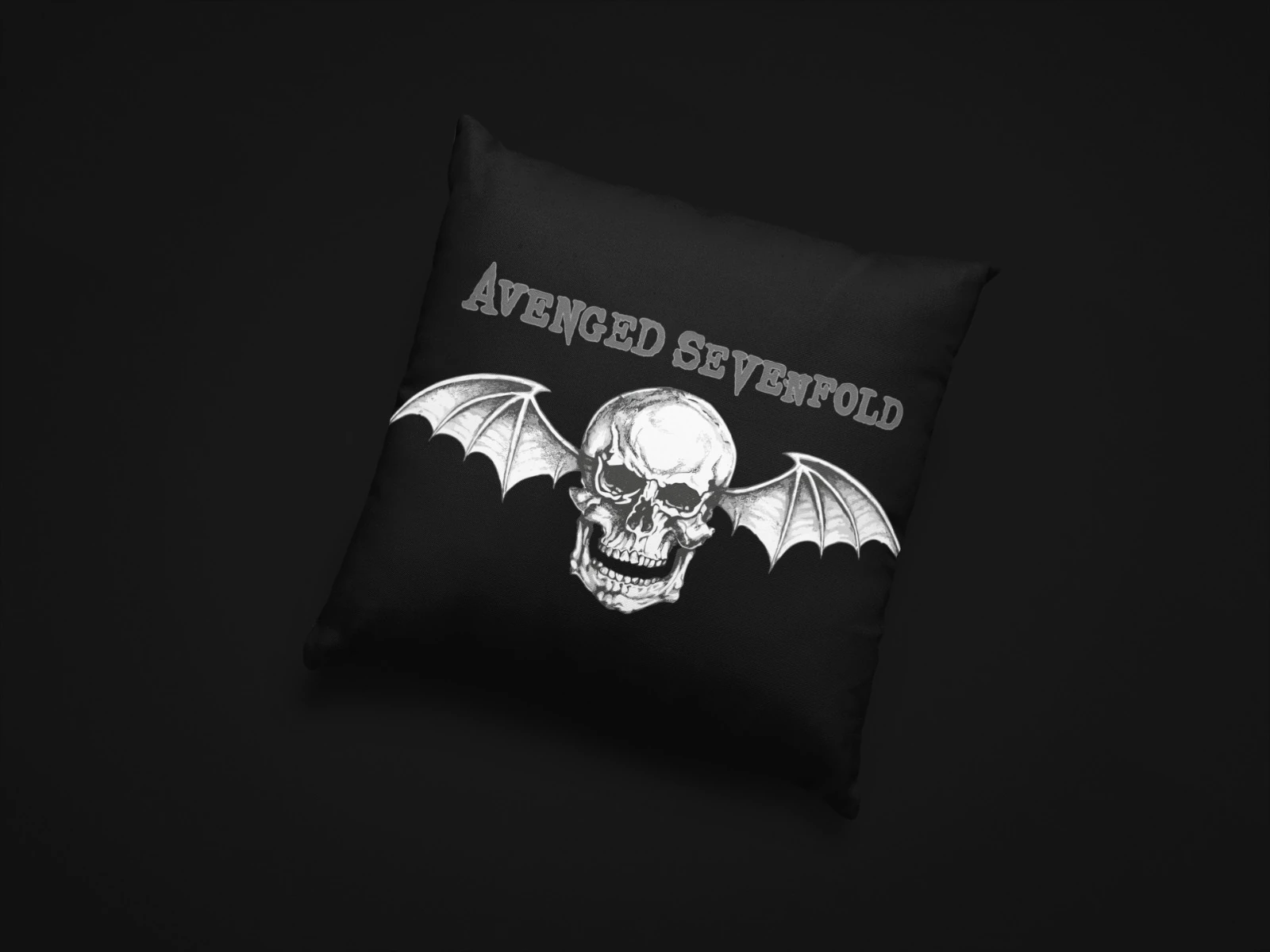 This black throw pillow showcases the iconic Avenged Sevenfold Deathbat skull logo in bold white detail. Designed for fans of the legendary metal band, the graphic features a menacing skull with outstretched bat wings and the Avenged Sevenfold name above it. The dark background and striking contrast make it a standout accent for sofas, beds, or gaming chairs. Add this edgy band-inspired pillow to your space to show your love for Avenged Sevenfold while giving your room a heavy metal vibe and extra comfort.