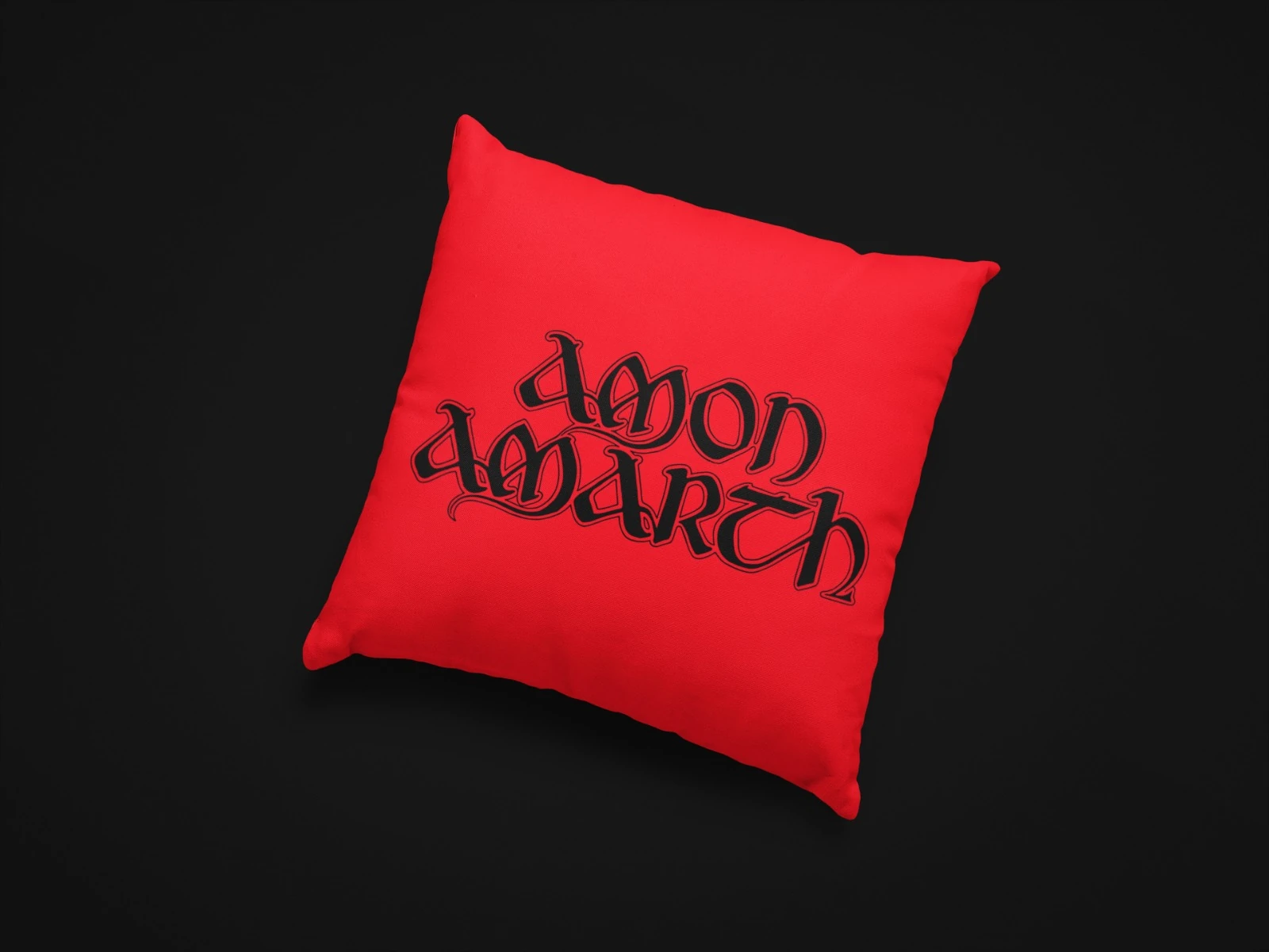 Make a striking statement with this vibrant red throw pillow featuring bold black gothic embroidery. Perfect for adding edgy elegance to any space.