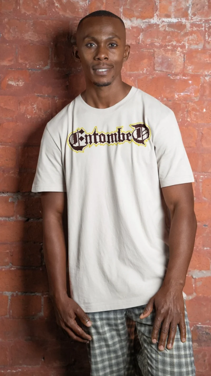 Elevate your wardrobe with this official Entombed band t-shirt showcasing the legendary logo in dramatic red and gold gothic lettering on a soft white base. Crafted for comfort and durability, this death metal essential captures the raw energy of Entombed’s iconic sound from albums like Wolverine Blues and Left Hand Path. Ideal for concerts, casual wear, or collectors. Available in multiple sizes – grab your piece of Swedish metal history today!