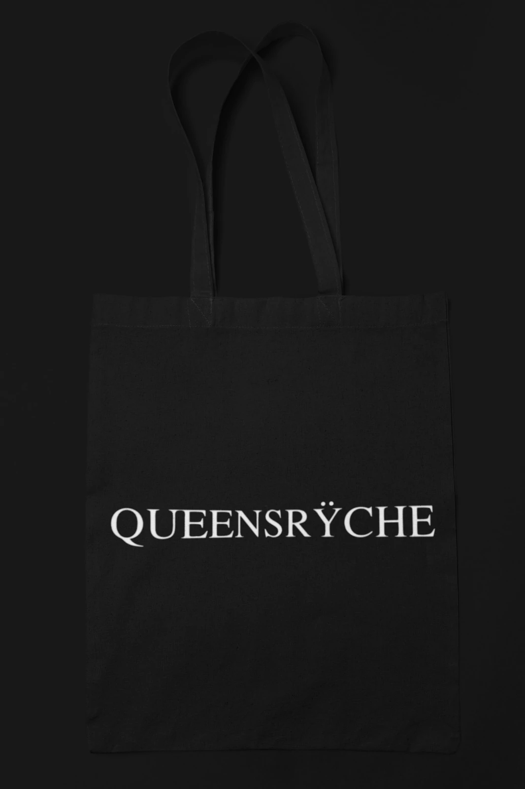 Carry your essentials in style with this black Queensrÿche logo tote bag. Featuring the band’s iconic QUEENSRŸCHE wordmark printed in crisp white across the front, this minimalist design is perfect for concerts, vinyl shopping, or everyday use. The sturdy fabric and long handles make it comfortable to wear over the shoulder, while the clean black-and-white look pairs easily with any outfit. A must-have accessory for devoted Queensrÿche fans who want to show their support wherever they go.