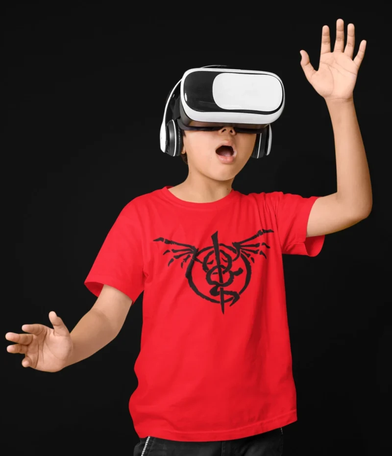 Discover our eye-catching red unisex paramedic t-shirt adorned with a powerful black winged caduceus symbol, the iconic emblem of medical excellence. Captured on a young model wearing a VR headset for a futuristic vibe, this comfortable cotton tee is ideal for paramedics, EMTs, firefighters, and healthcare heroes. Perfect for work, gym, or casual wear, it combines professional pride with stylish appeal. High-quality print ensures long-lasting durability. Ships fast from Waynesville, NC.